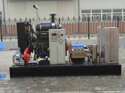 ? 泵型:3D250(A)-S 壓力:100 MPa 流量:80L/min 驅(qū)動形式:柴油機,柴油機帶有空濾器、消音器、水箱、氣泵。? 泵頭材質(zhì):高強度合金鋼,表面滲渡處理; 柱塞材質(zhì):高強度不銹鋼, 表面噴焊,陶瓷; 柱塞直徑:28mm ? 氣動旁路截止閥:用于柴油機的無負荷起動及高壓泵遠程控制壓力接頭:9/16—18UNF接